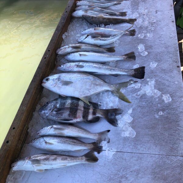 Backwater has remained ok but has slowed a little since Red Tide has made its apperance again. Still catching Sand Trout, Whiting , occasional Pompano and Sheepshead. Offshore we are catching Lane Snapper , Sheepshead , Spanish Mackerel and Goliath Grouper with occasional something different. Untill next time